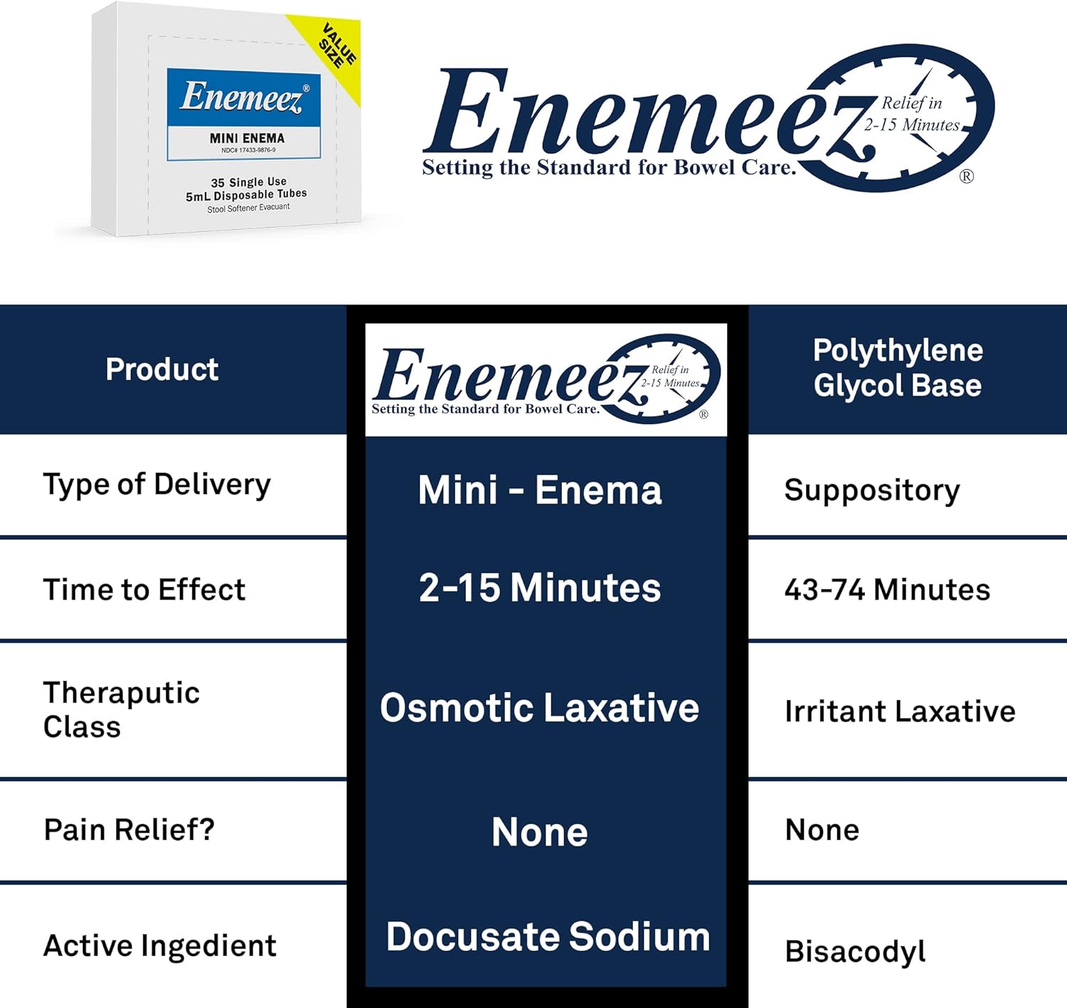 • FAST RELIEF: Experience fast-acting constipation relief with Enemeez’s formula, ideal as laxatives for constipation relief within minutes.